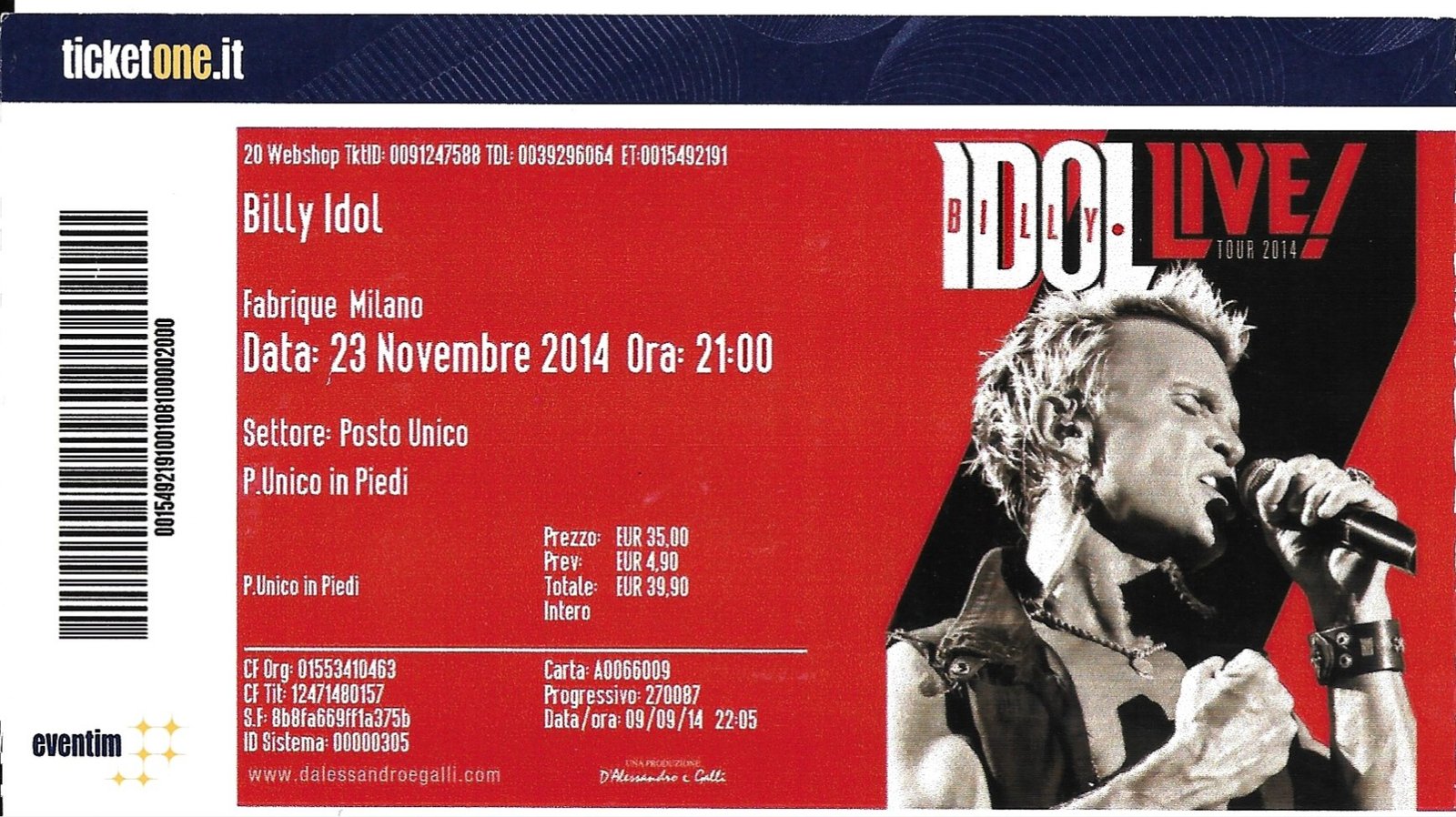 Billy Idol - 23 novembre 2014 Milan